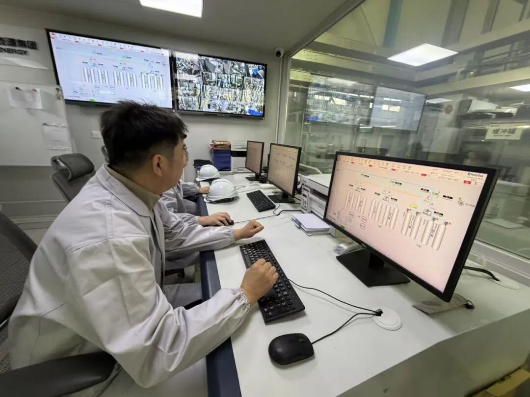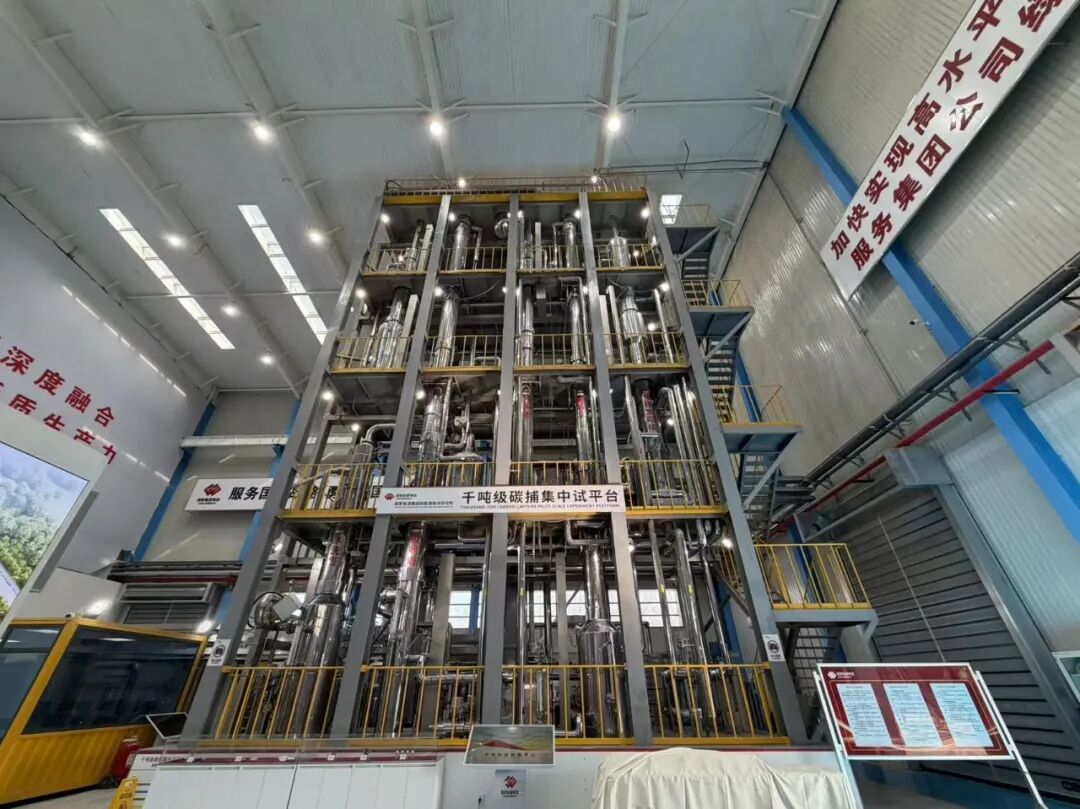 离开中海储能,记者来到国家能源集团新能源技术研究院,探访千吨级化学吸收法碳捕集中试平台。这里管道纵横、设备有序,技术人员紧盯监测面板记录数据,平台平稳高效运转。