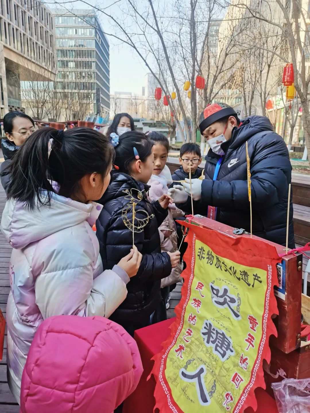 “甜蜜新年-非遗吹糖人”也是备受游客喜爱的活动之一。非遗传承人在现场展示吹糖人技艺,引起了小朋友的围观。有小朋友吹了牛、还有小朋友吹了小兔子等,都吹出了属于自己的甜蜜小礼物。这一传统技艺的展示不仅让游客们感受到了中国传统手工艺的魅力,更让他们亲手体验到了制作糖人的乐趣。