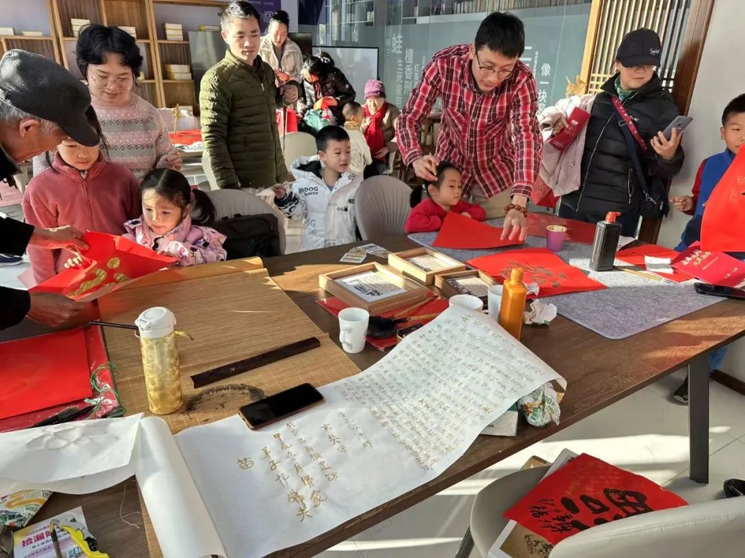 在“新春送福-笔墨传情”环节,游客们纷纷拿起毛笔,书写福字。他们将满满的福气与祝福凝聚于一笔一划之间,带回家中,温暖整个冬天。
