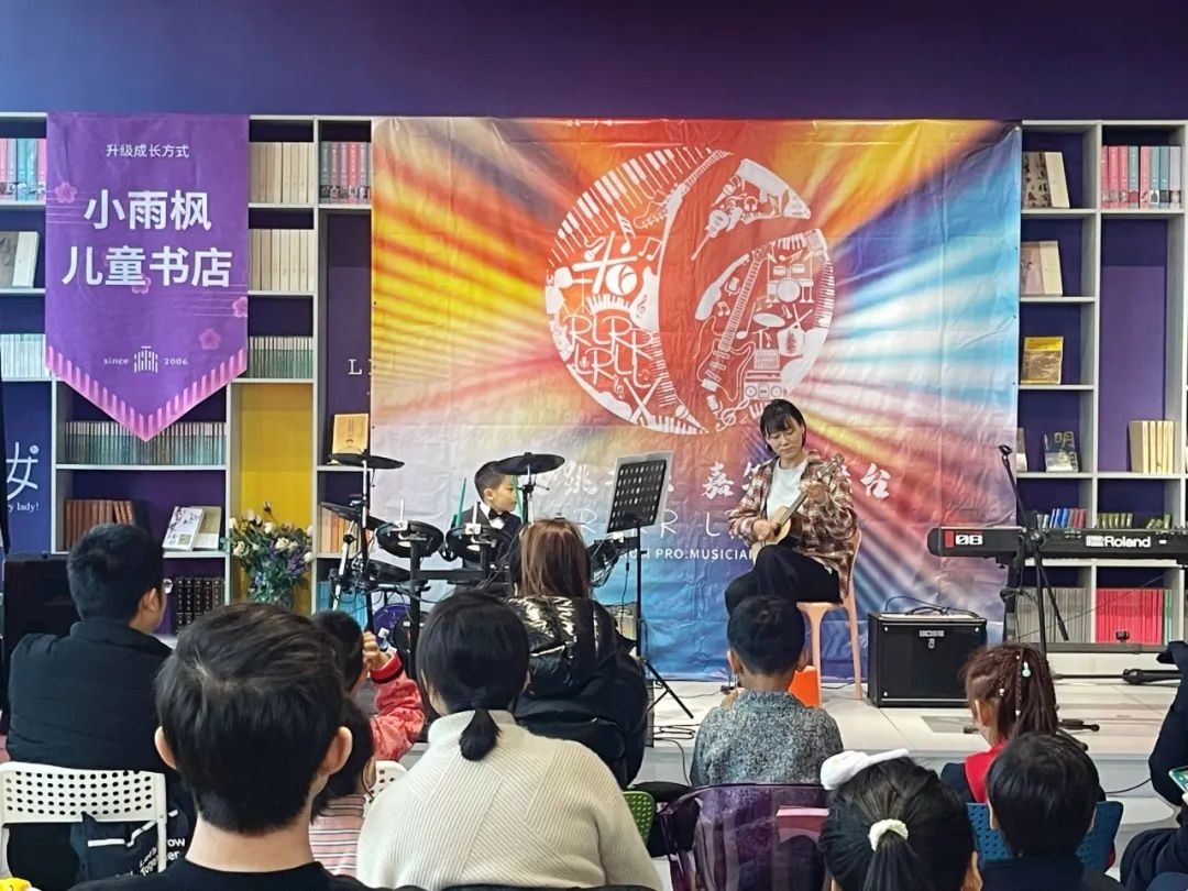 在雨枫书店的二层,超燃乐队的表演瞬间点燃了现场氛围,让每个人都沉浸在热烈的气氛中。与此同时,可爱的孩子们也带来了乐器表演,用灵动的音符奏响了纯真乐章。在这里,音乐没有界限,快乐尽情释放。