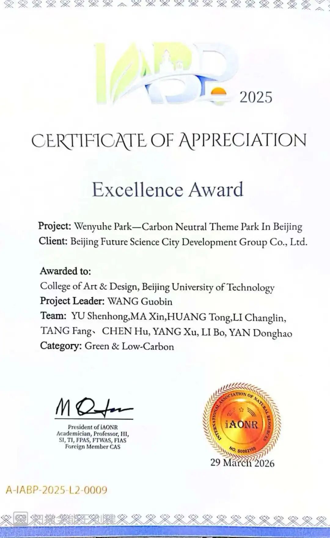 近日,北京温榆河公园·未来智谷(以下简称“未来智谷”)凭借在绿色低碳领域的卓越创新实践,从全球众多申报项目中脱颖而出,斩获2025年度国际自然资源与规划范例奖(IABP)绿色低碳类优秀奖。作为全市首个以“碳中和”为主题的公园,未来智谷正以扎实的实践成果,成为首都绿色低碳发展的生动样本,为全球城市可持续发展贡献“中国方案”。