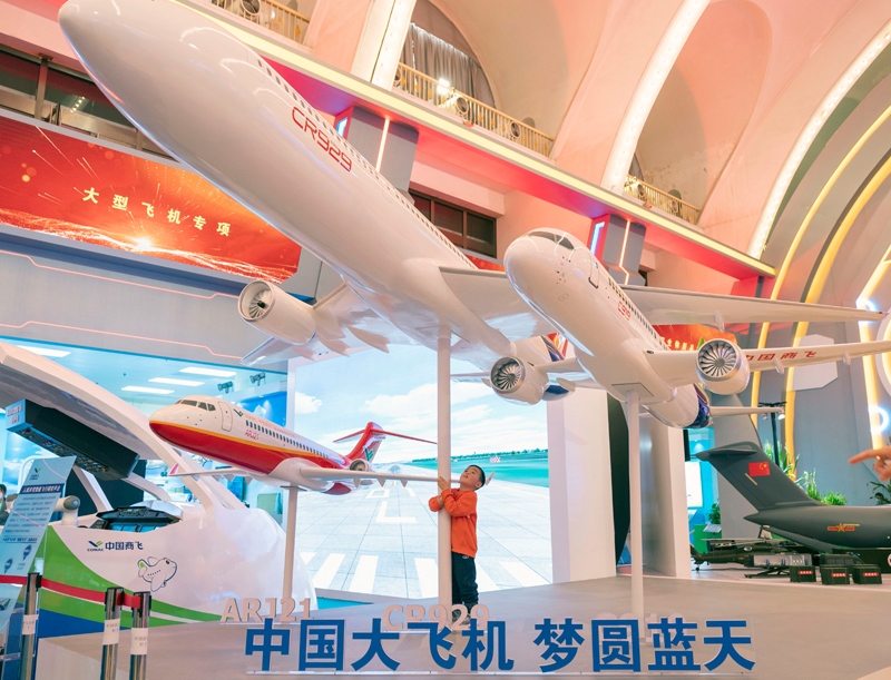 中国商飞公司携人机共驾智能飞行研究平台、航电系统设备和材料标准件,以及5G应用场景等多项展品亮相,向公众展现了中国商飞公司“十三五”期间在科技创新领域取得的阶段性成就。