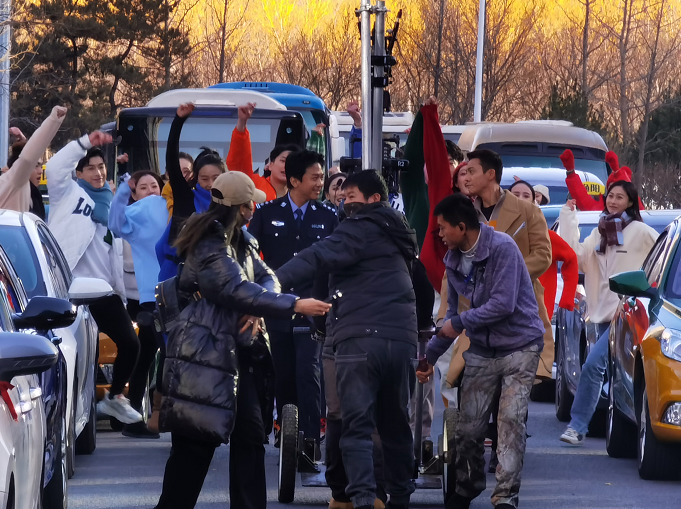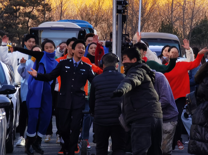 △ 王宝强、田雨、陈永胜、高晓攀、尤宪超在未来科学城未来中心外景拍摄花絮