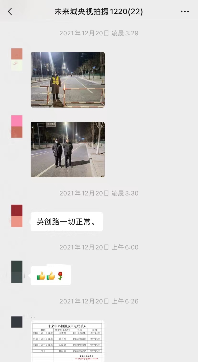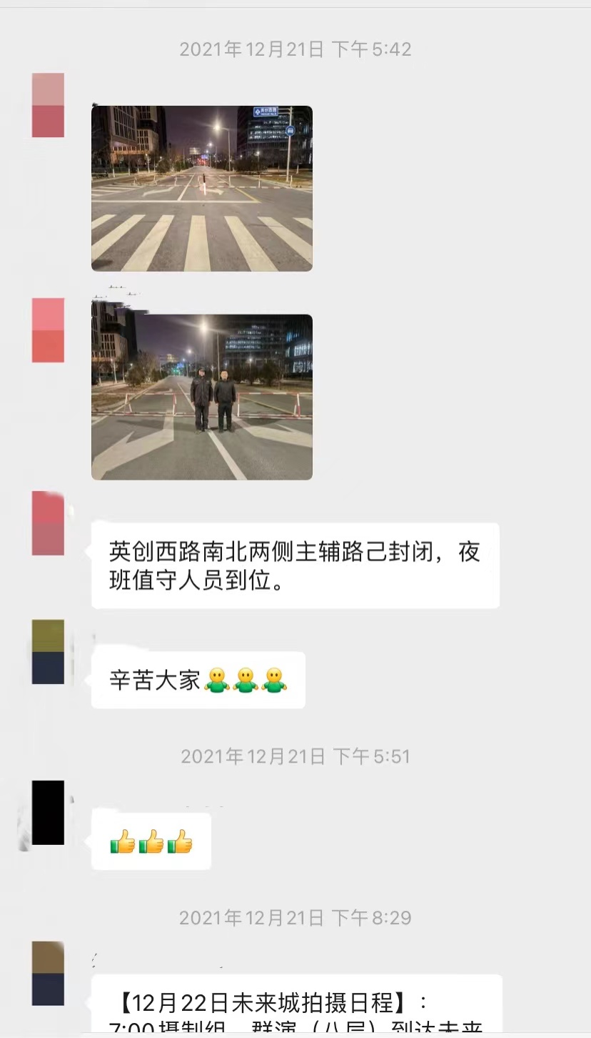 在2021年12月20-22日3天拍摄期内,未来科学城工作人员每天凌晨3点就完成了各项准备工作,拍摄期间,还需要根据摄制组的行程安排及现场情况随时随地进行调整。正值寒冬腊月,大家没有一句叫苦叫累,高质量高水平完成各项任务,获得央视春晚摄制组的高度认可。