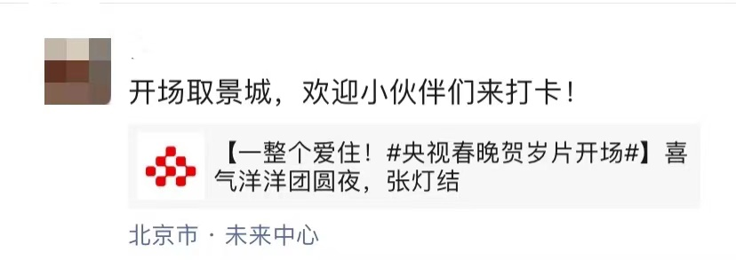 此次未来中心项目能够“筑”成2022年央视春晚拍摄取景地并作为开场亮相,也得益于她的设计理念和建设标准,春晚拍摄前期,在大量的海选照片中,未来科学城脱颖而出,未来中心项目也成为春晚导演的首选之地。更多花絮还将以短视频形式通过未来创新汇视频号发布,敬请关注。