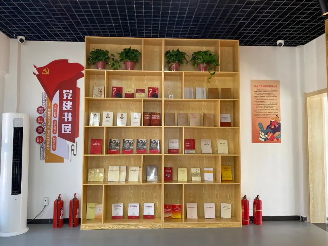滨水书香阅览室建筑面积128平方米,分为图书摆放区和阅览区,同时开辟专门区域摆放党建学习材料,目前有图书600余册。