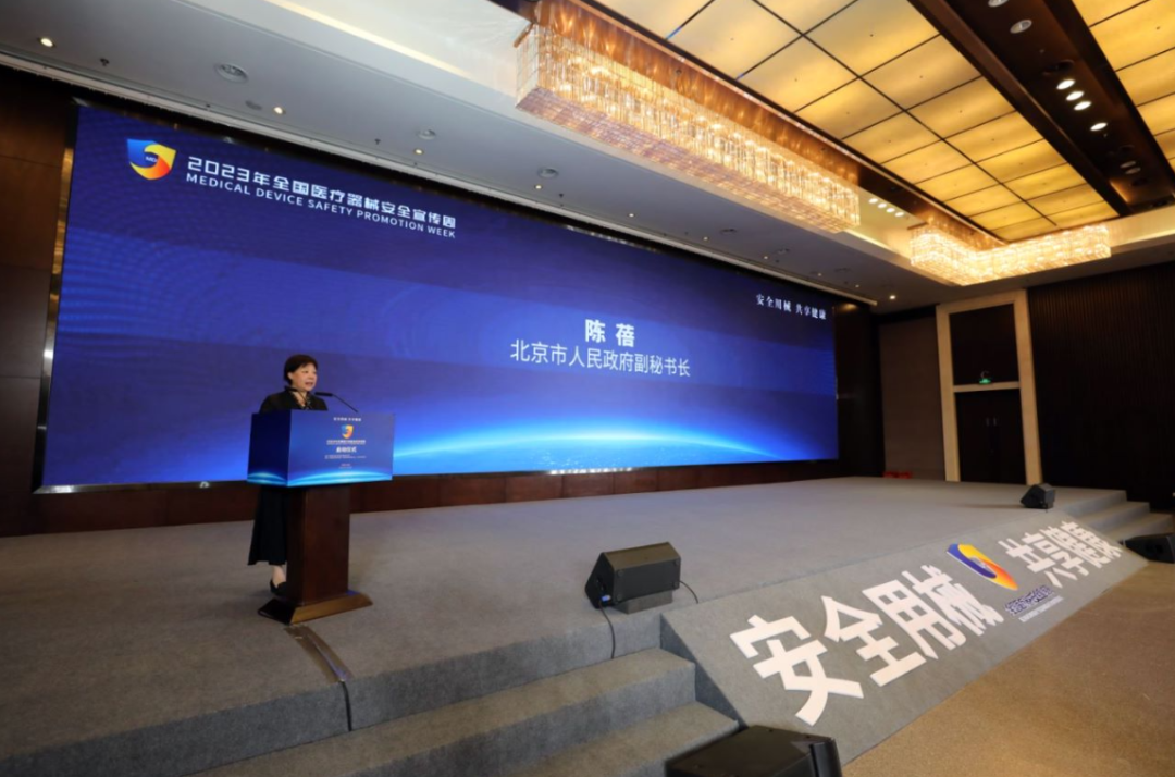 陈蓓在致辞中指出,要立足首都城市功能定位,坚持面向世界科技前沿、面向经济主战场、面向国家重大需求、面向人民生命安全,加大医疗器械基础研究能力、关键技术研发、产业发展配套、质量安全监管等方面的政策支撑,以国内领先、国际一流的首善标准,推进京津冀协同发展,推动医疗国际化的标准,推动医疗器械高质量的发展,不断取得惠及最广泛人民切身利益的重大成果,更好地服务产业、服务社会、服务公众。