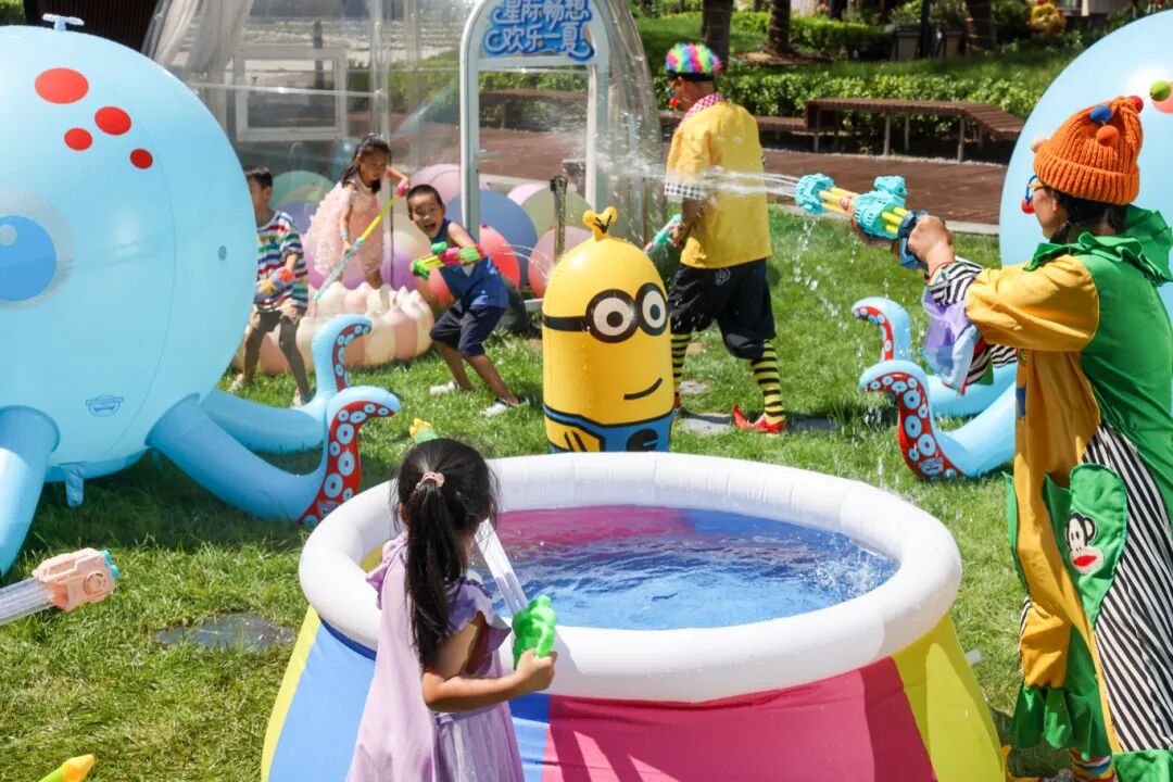 水枪大战成为本次活动最火爆的项目,大小朋友们在清凉的水花中尽情释放夏日激情,孩子们举着水枪与小丑追逐嬉戏,欢笑声在场地中此起彼伏。