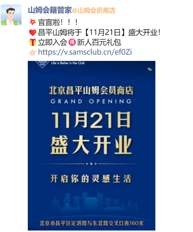 备受期待的北京昌平山姆会员店终于定档!近日,北京商报小编从山姆会籍管家处获悉,昌平山姆会员店将于11月21日开业。