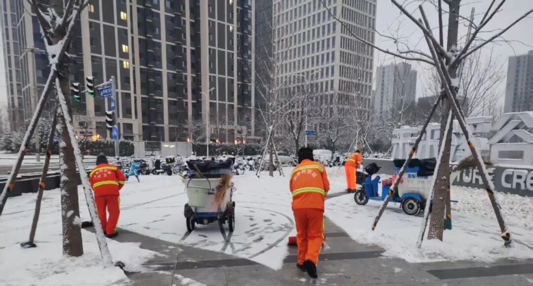 降雪期间,城市运营公司全体扫雪铲冰人员放弃休息,24小时昼夜值守、连续作战,顶风冒雪坚守在作业一线,全力清理园区内主次干道、学校周边、居住小区周边、地铁出入口等重点区域的积雪残冰,用汗水保障道路畅通。同时,积极引导央企和沿街商户履行“门前三包”责任,参与扫雪铲冰工作,形成“专业力量+社会参与”的良好工作格局。