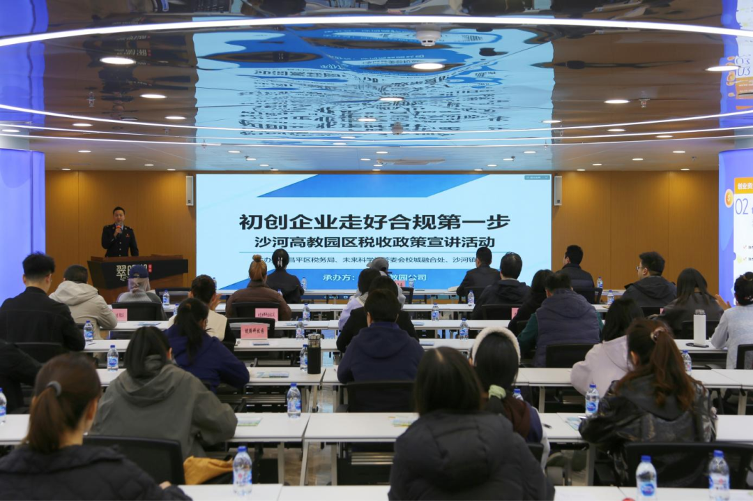 近日,在全国第35个税收宣传月期间,未来科学城管委会联合昌平区税务局、沙河高教园公司,在沙河高教园区高校成果转化示范基地,共同举办了“初创企业走好合规第一步”税收政策专题宣讲活动。本次活动邀请了沙河镇政府、高校科技园公司、高校成果转化项目、校友企业及未来大学科技园入驻企业等四十余家单位、60余人参与。